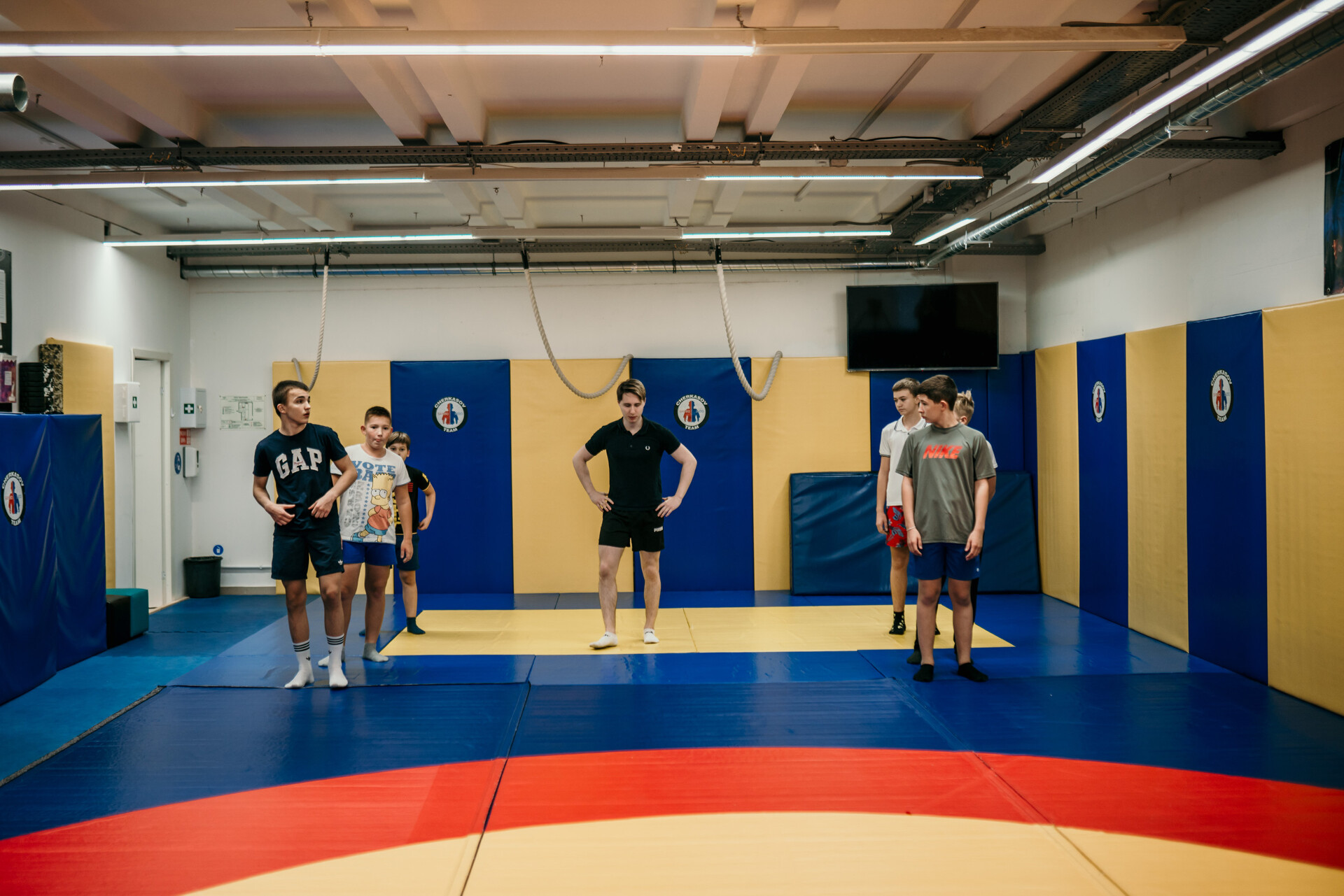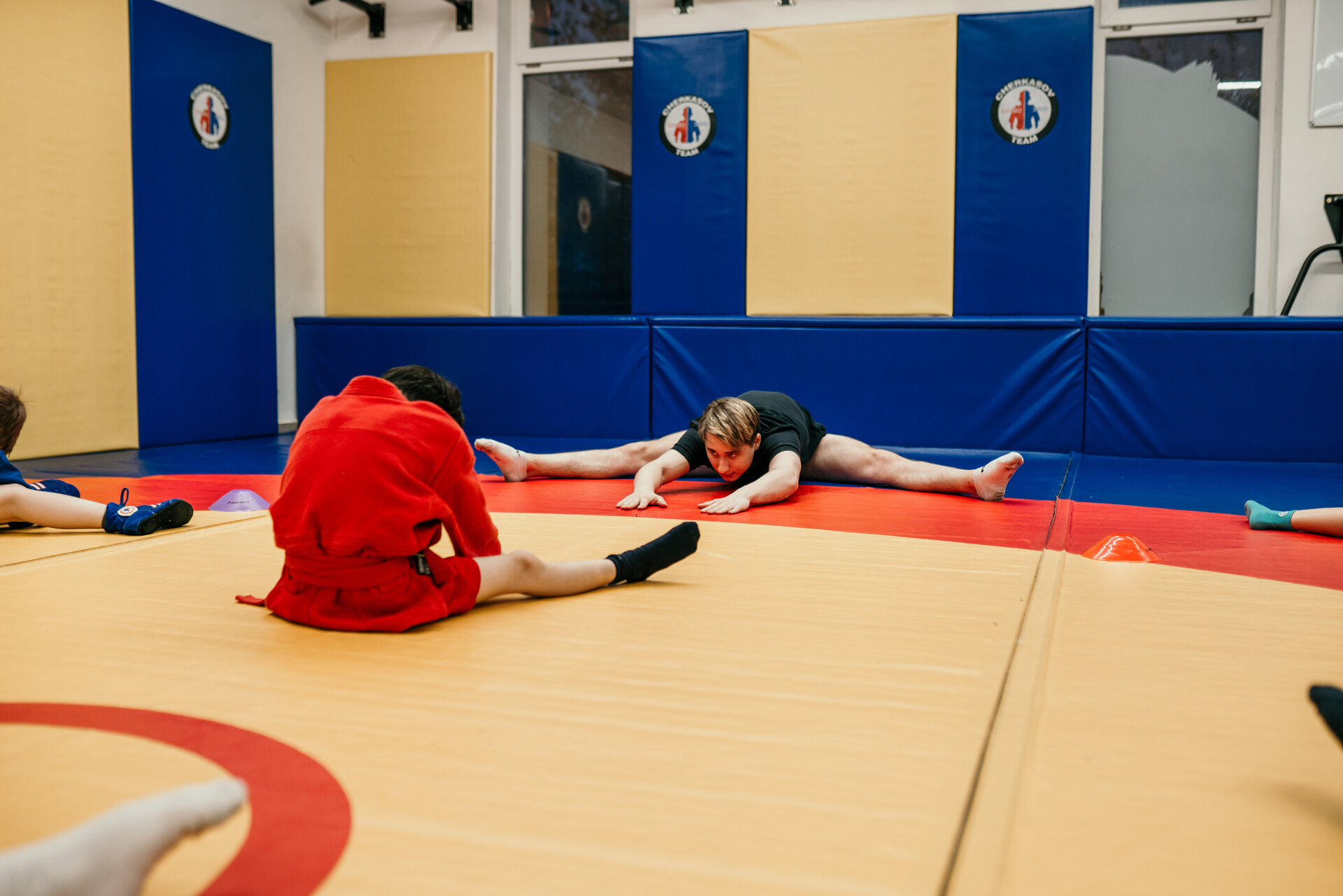 Тренировочный процесс выстроен максимально грамотно: разминка , специальные упражнения для подготовки и разогрева мышц и связок, участвующих в выполнении упражнения, детальный показ и отработка упражнения, ОФП – для укрепления мышц, растяжка.