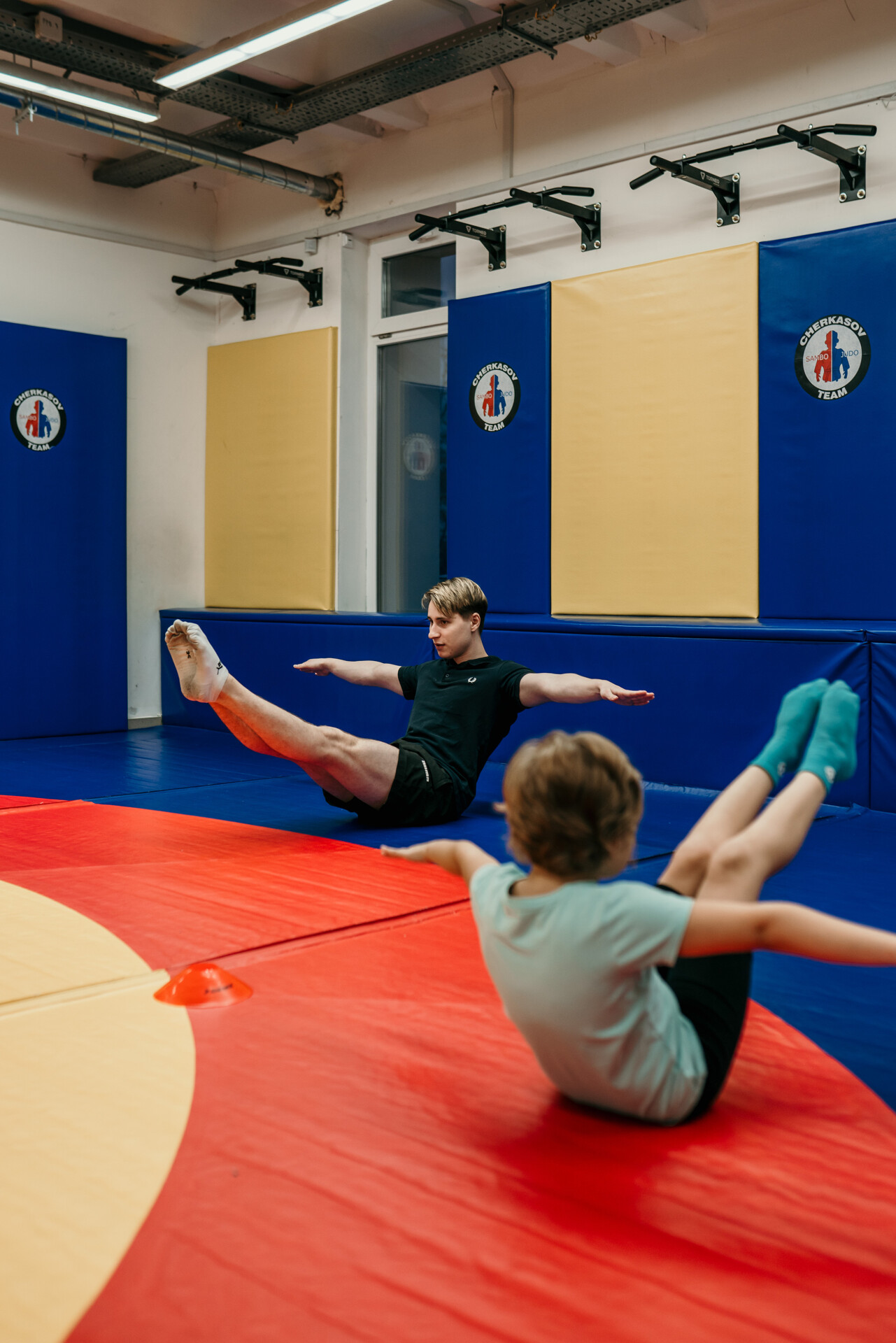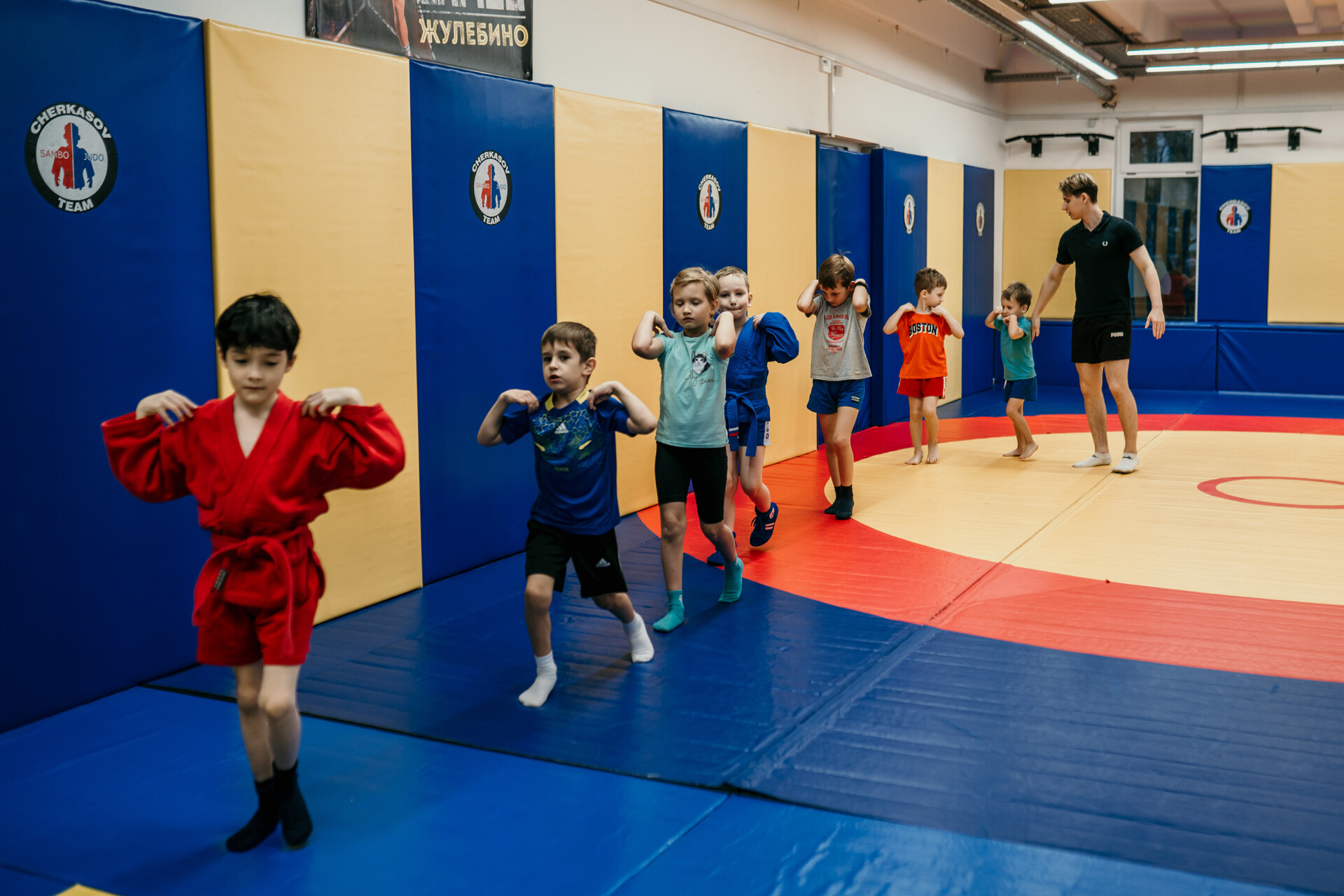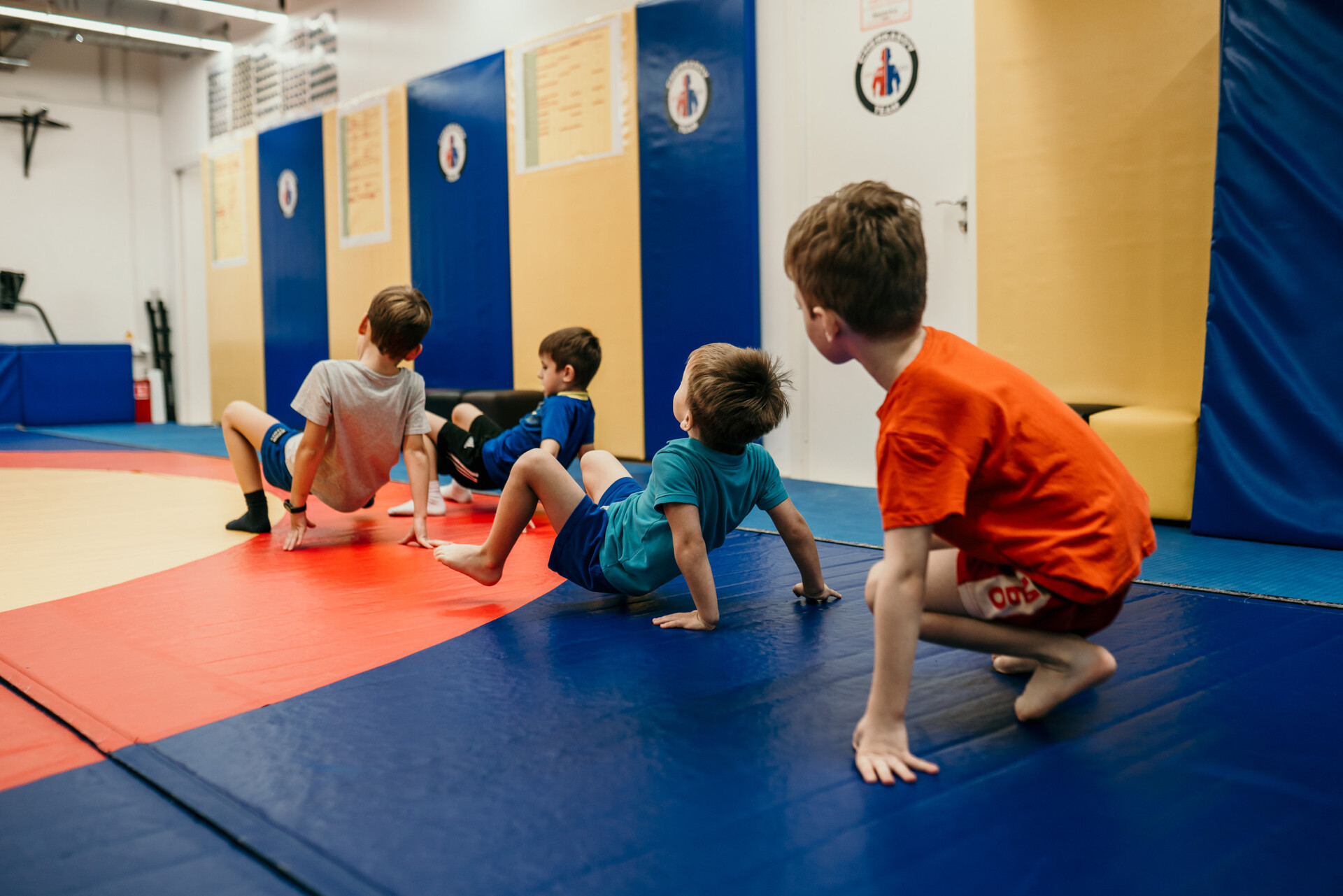 - Спортсмены младшего (4-8 лет) возраста осваивают базовые элементы акробатики и гимнастики по программе 1-2 юн. разрядов