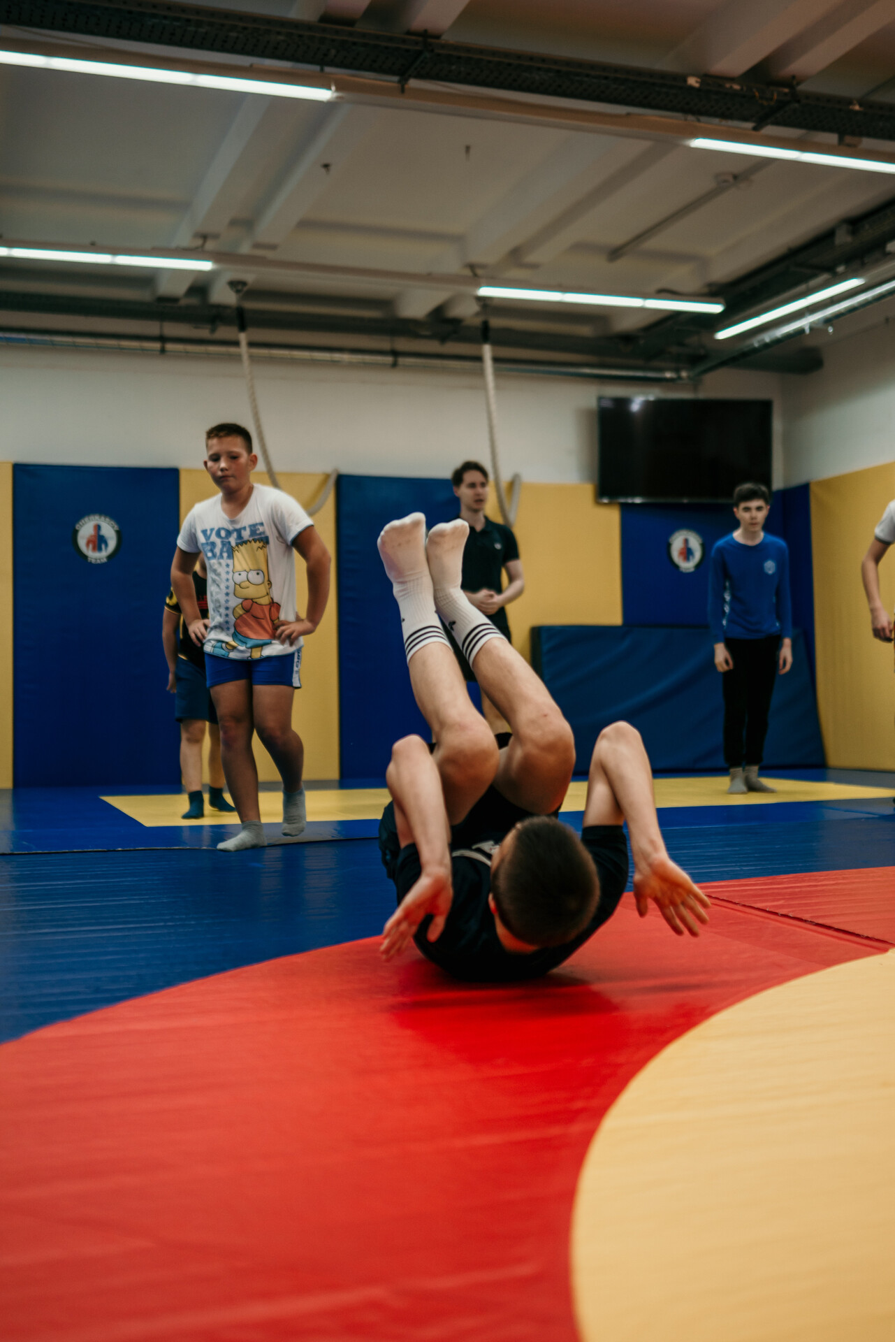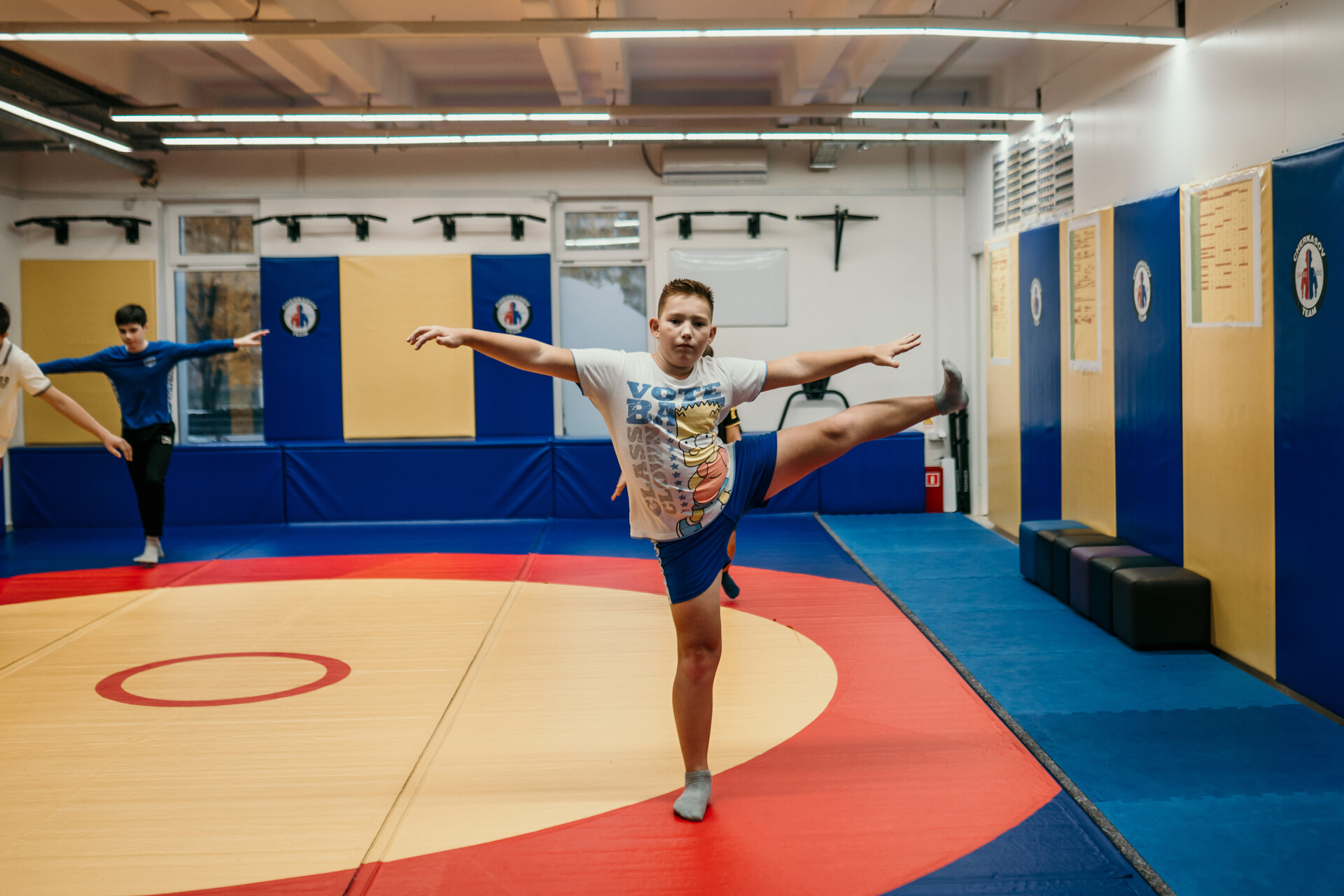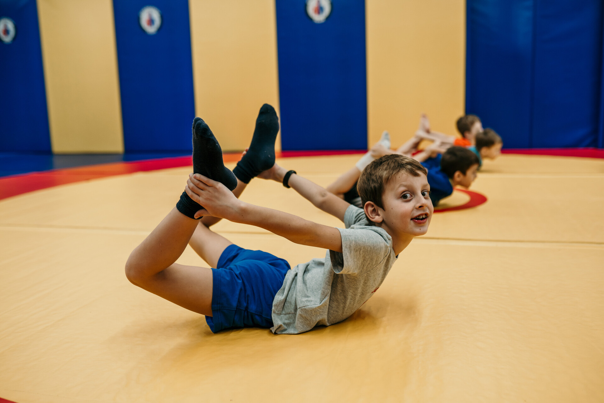 - Спортсмены младшего (4-8 лет) возраста осваивают базовые элементы акробатики и гимнастики по программе 1-2 юн. разрядов